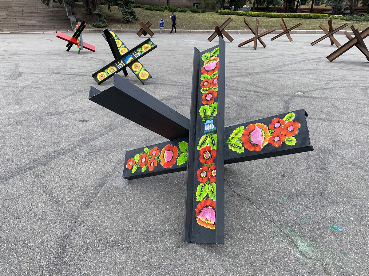 The point of the performance was that children and adults, professional and not-so-professional artists painted Czech hedgehogs. These attributes of war can be seen in the city in every alleyway. However, this is no reason to be sad and depressed. That, in my opinion, is the idea, to make defensive weapons safe, to cheer people up and to give them an outlet for their energy during these difficult times for Ukraine and the city.