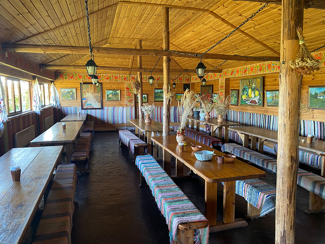 Ще можна перекусити в шинку, який оформлений в українському стилі і навіть посуд тут не з порцеляни, а глиняний. Вийде традиційний обід із борщу та вареників із компотом під українську музику.
