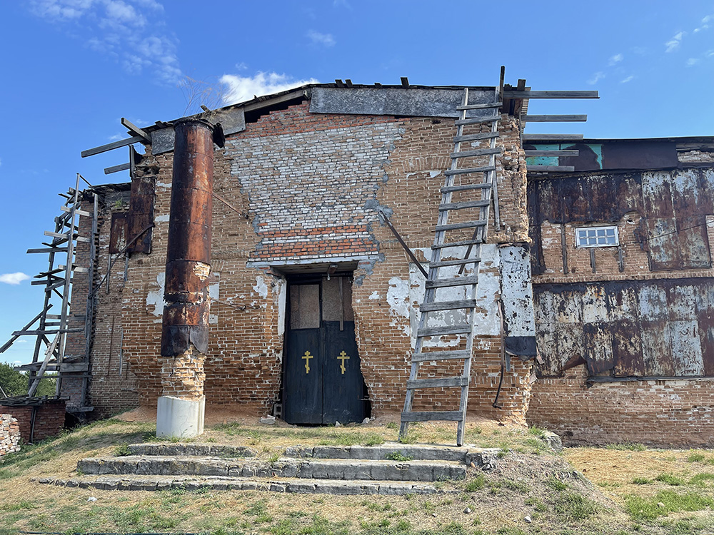 На території є дерев’яний храм – його збудували на початку 2010-х. Наразі служби проводять там і паралельно відновлюють стародавню церкву.