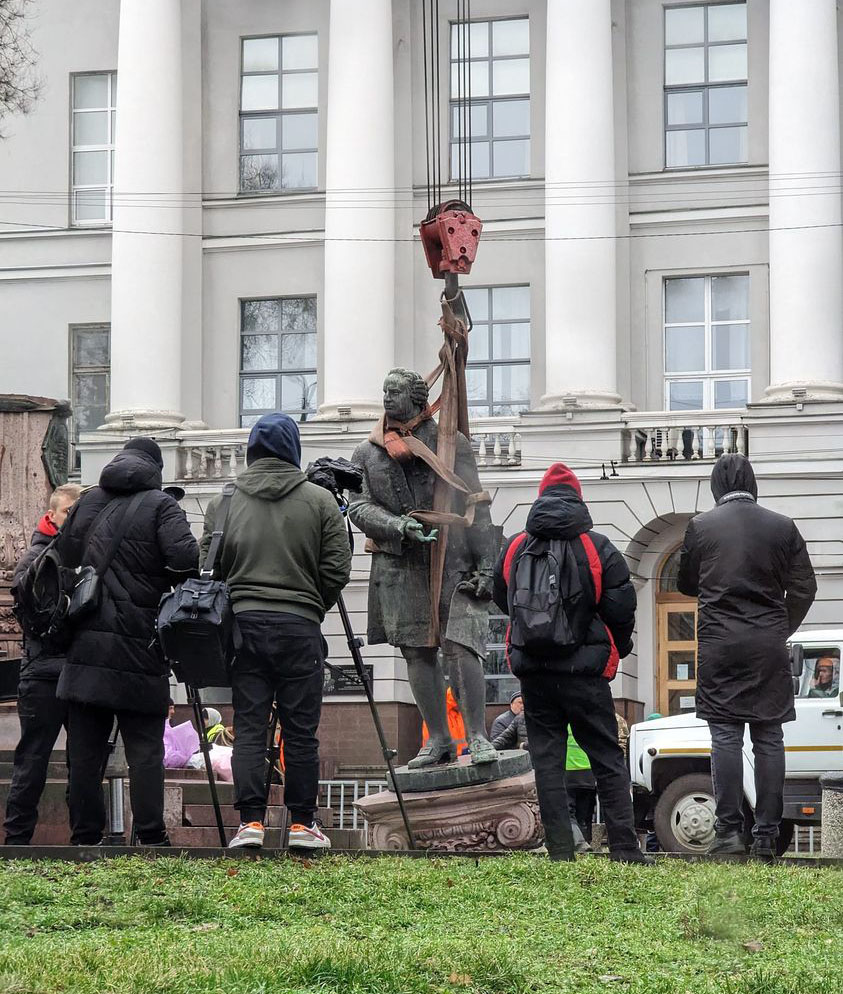 И вот, через месяц после решения городского совета – 6 января 2023 года памятник Ломоносову в Днепре снесли. Из-за особенности конструкции его подняли краном вместе с частью пьедестала.