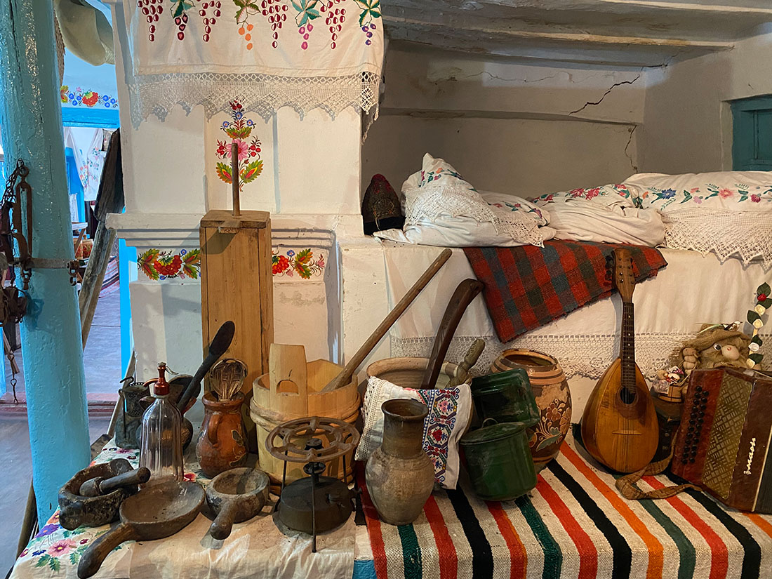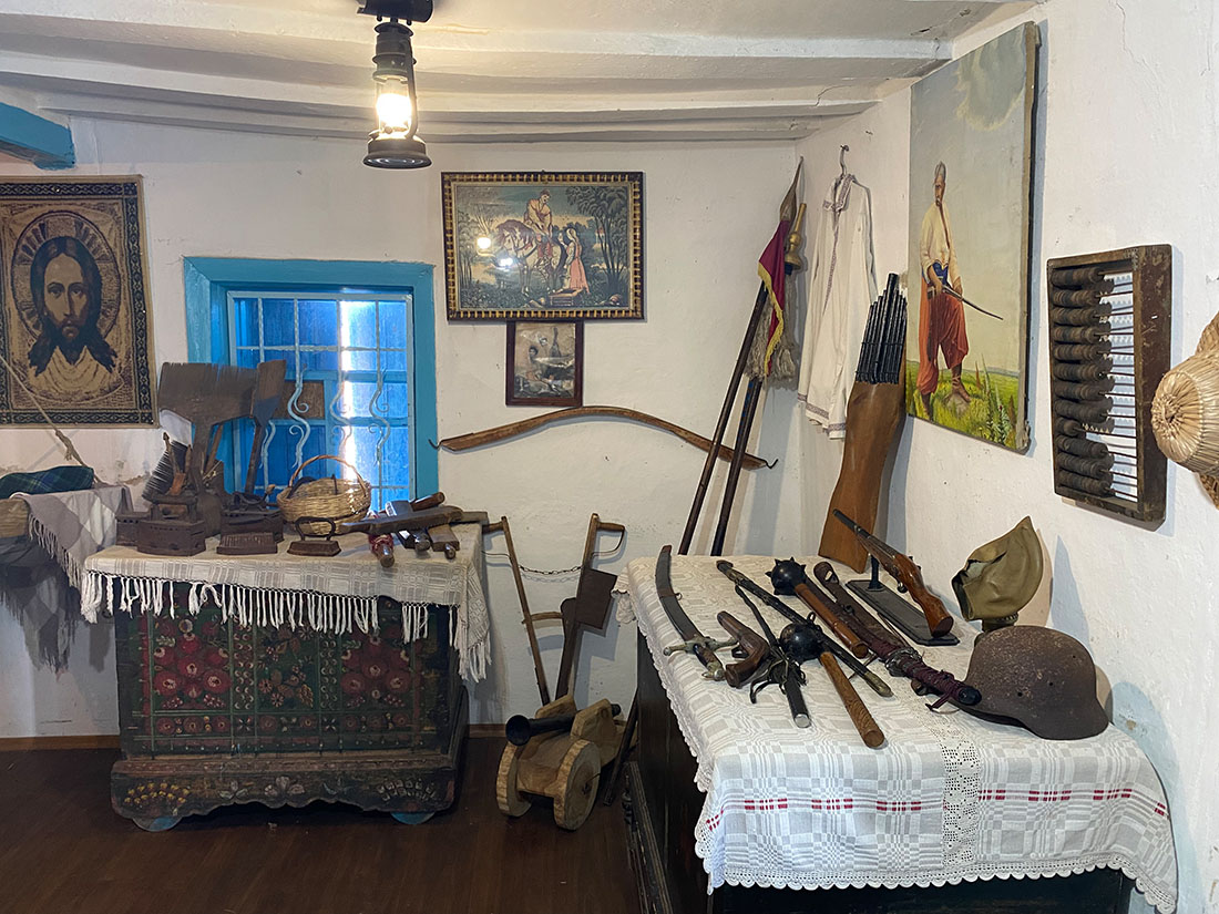 Дальше идем смотреть музей Креста. Он находится немного в стороне в классическом доме украинского села XVII века. В музее собрано много исторических артефактов – вещей, которыми пользовались наши предки.