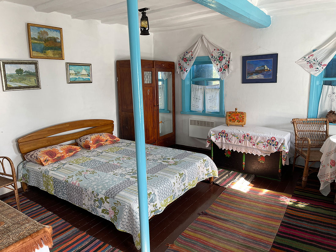 На казацком хуторе Галушковка можно не только погулять на территории, но и заночевать. Тут есть отель со своим участком и двором. Сам дом это тоже старая украинская хата и внутри старинная мебель и утварь. Одна ночь в этно-отеле стоит 1500 грн.