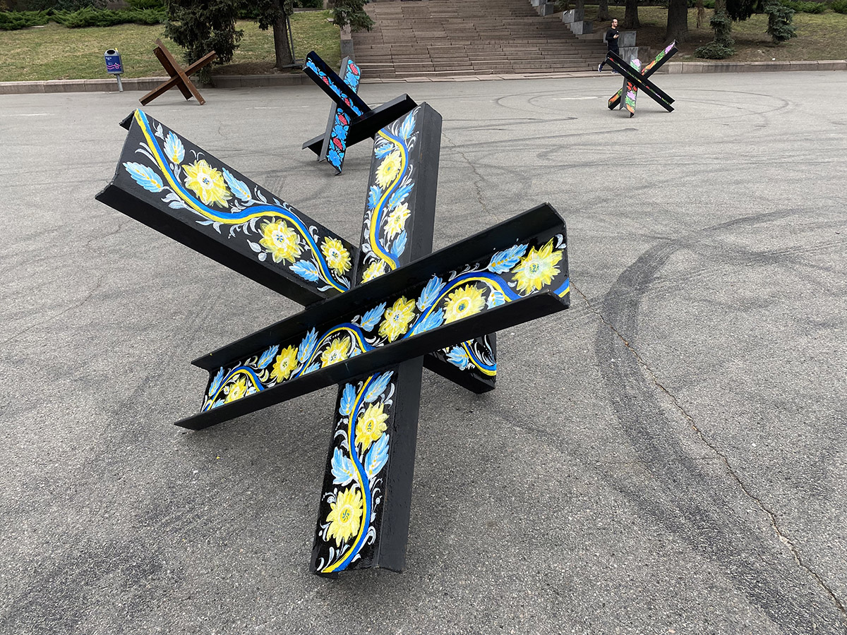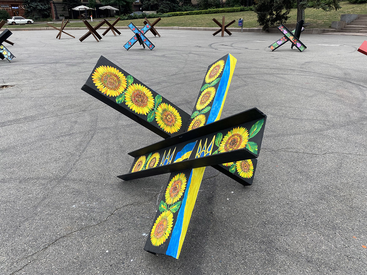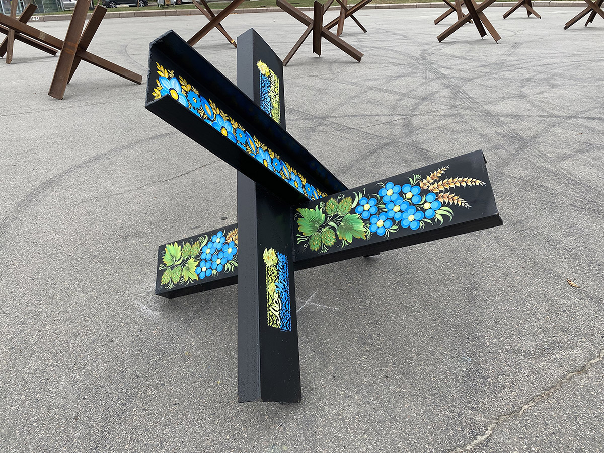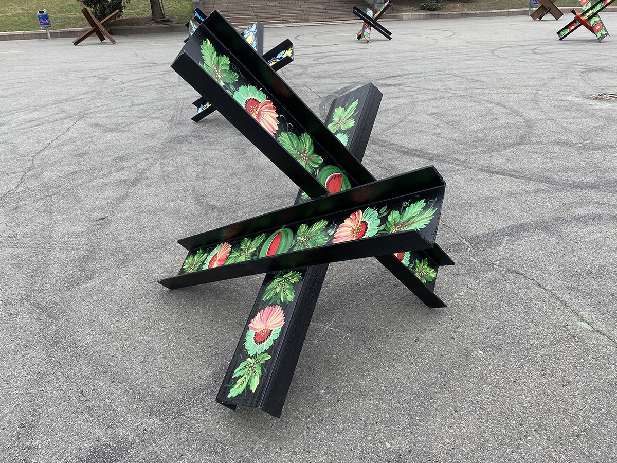 Протитанкові їжаки прикрашали 10 вересня 2022 року. Зібралося кілька команд майстрів, які малювали різні візерунки. Їжаки привезли непрості, а спеціально підготовлені. Поверхня була пофарбована та відполірована – щоб фарба добре лягала та трималася.